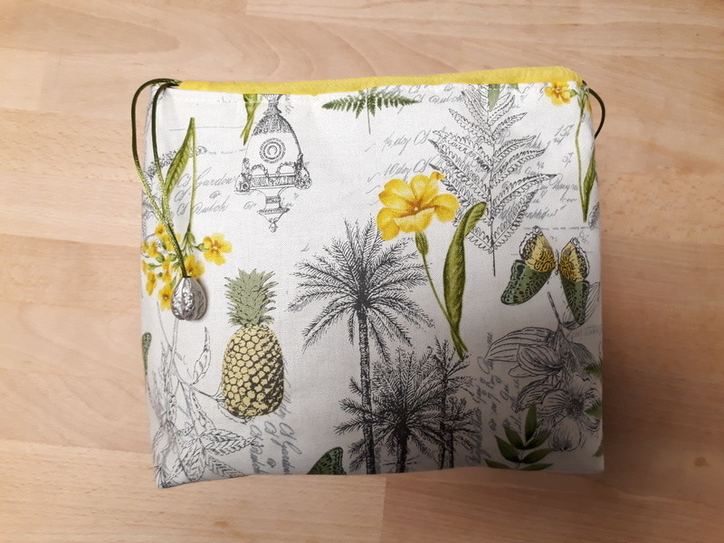 Ce sac est réversible, vous pourrez donc jouer sur les couleurs de vos tissus ! Il se ferme par une cordelette et pourra transporter vos accessoires de maquillage, vos mouchoirs...Il fera également une superbe pochette cadeau !